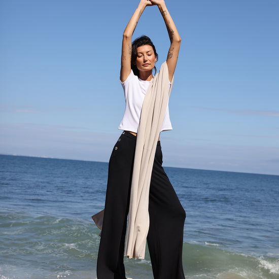 Upgrade your wardrobe with The Palazzo Sailor Pant, a piece that combines elegance, comfort, and sustainability. Made in the USA, these palazzo pants for women are designed to offer a timeless and versatile addition to your collection.